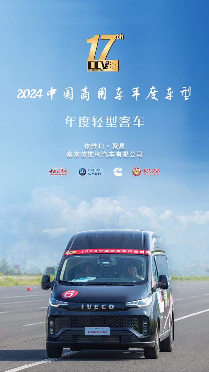12月1日,由《中国汽车报》社有限公司主办的2024中国商用车年度车型盛典在北京隆重举行。经过严苛的线下测评、权威专家评议等综合考量和选拔,拥有卓越表现的依维柯聚星脱颖而出,摘得“年度车型”称号,荣膺“年度轻型客车”荣誉!