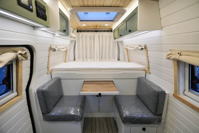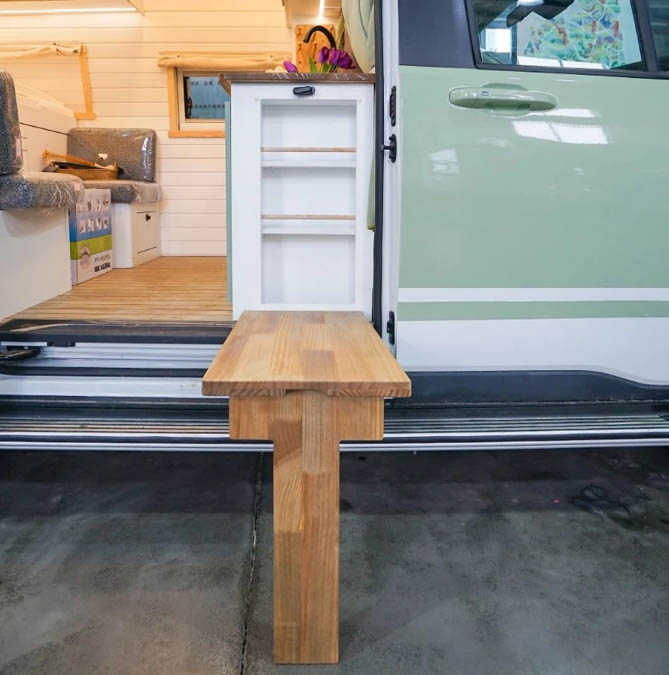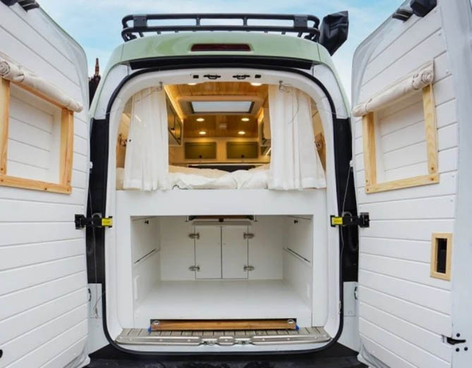 车尾部分设计了一个抽拉式床铺,展开后可以形成一个1.8*1.5m的宽敞休息区。在这里,您可以躺下享受宁静的午后时光,也可以邀请朋友一起分享旅途中的点滴趣事。床铺的舒适度和实用性都得到了精心设计,让您的房车生活更加美好。