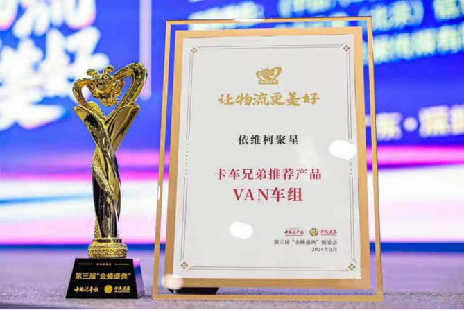 金蜂牵线,凝聚良善,弘扬先进,美好向前。2024年3月7日,由中汽兄弟携手中国汽车报社、中国汽研等单位共同举办的第三届“让物流更美好---金蜂盛典”在广州深圳隆重举行。在这场由车企、部件、车后市场、物流运输企业、优秀运输人共同参与的公益盛典上,南京依维柯凭借多年来在企业社会责任和公益事业方面的杰出贡献荣获“卡车兄弟推荐公益品牌”,旗下产品依维柯聚星以备受用户信赖的卓越产品性能摘得“卡车兄弟推荐产品——VAN车组”殊荣,硬核实力,实至名归。