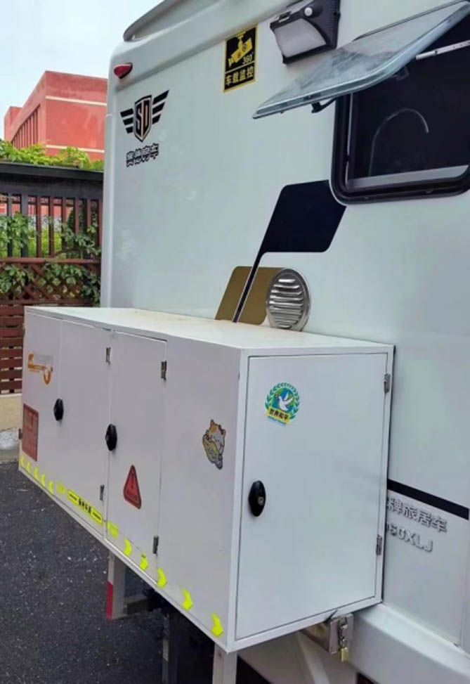 陈先生:“我最喜欢的是房车后面的挂箱,充分利用了房车的尾部设计,空间很大,方便存放电动车等大型物品。而且我这台房车的底盘带大梁,稳得很,让我在旅途中更加感到无比安心。”