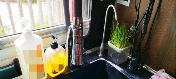 潇肖女士:“这是我的直饮水机,当初专门让厂里换的,想喝水的时候,直接接了就可以喝,非常方便。而且幸好我这台房车的承载性强,才顺利装上了我想要的供水系统,喝上了纯净和安全的水。”