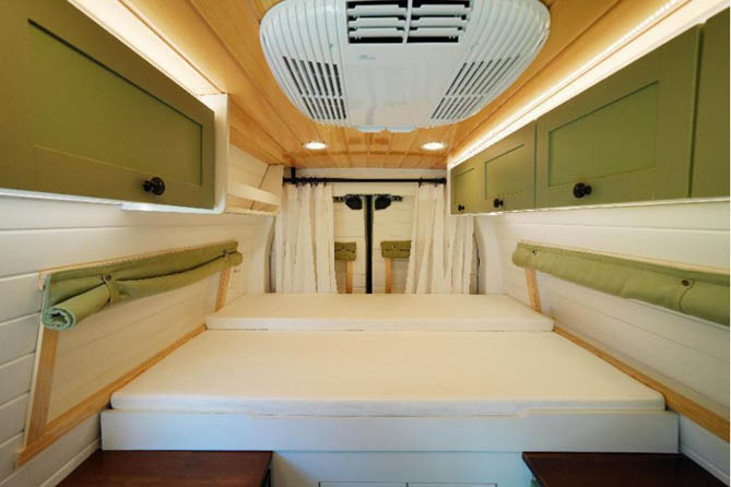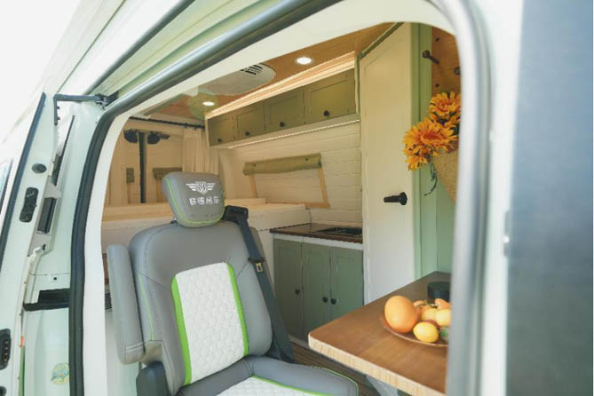 除了强大的越野性能,赛德星辰PRO在舒适性方面也表现出色。以原木色和白色桑拿板为基调,营造出一种自然、简约而高雅的氛围。豆沙绿与白色相搭配的家具,色彩柔和而协调,既增添了空间的活力,又不失温馨感。