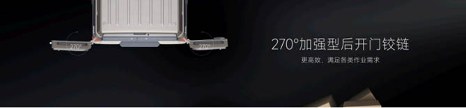 依维柯得意的后开门采用的是270°加强型铰链设计,即使身处狭小空间,依然能够敞开车门,方便叉车作业及搬运,使用户装卸运输轻松省力。