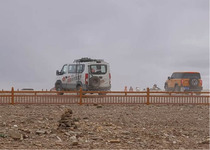 心怀远景,必见美景。一路走走停停,依维柯4×4抵达5000KM纪念碑,邂逅了充满浪漫诗意的多情措,与之遥相顾盼的是卓姆拉日雪山,波光粼粼,水天一色,仿佛遗世独立的仙境,让人不禁感叹人间值得。