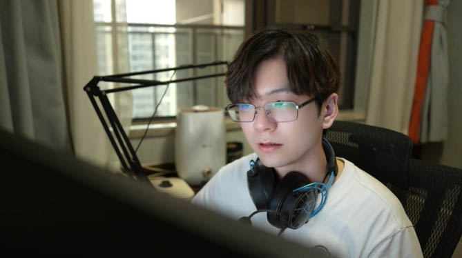 (在新租的小卧室,正在游戏中“奋战”的刘同学)