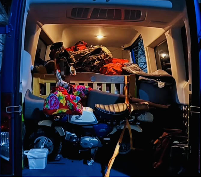 收拾行李的心情是最激动的,本以为装车得折腾半天,但是欧胜空间大,折叠桌椅、保温箱、露营设备统统码得整整齐齐,还能给小摩托留个位置。我坐进驾驶位调好座椅,转头一看,后排空间依旧宽敞,膝盖离前排椅背还有一拳多距离。这下跑长途,腿伸直都没问题,累了还能躺平歇会儿。