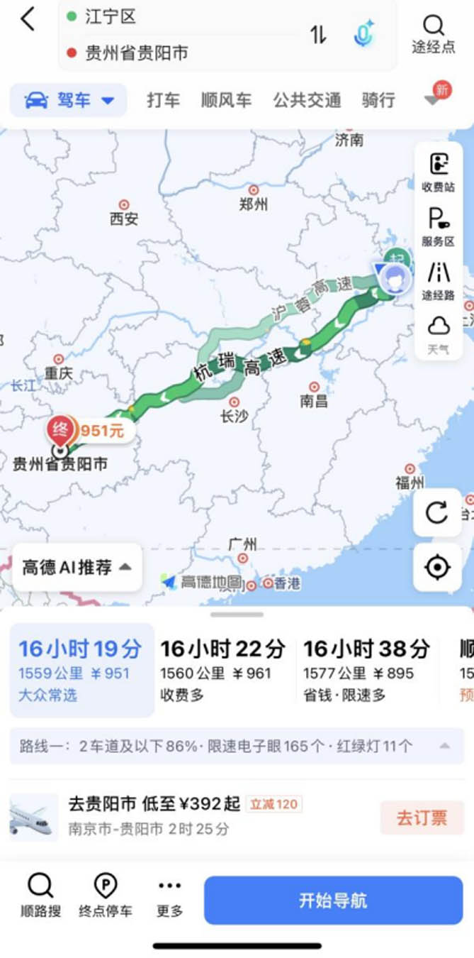 “要不咱就去贵州?开着欧胜出去跑跑,五一期间还免高速费!”我跟家人边合计着,边打开导航,“从南京过去大概1500多公里,反正欧胜空间大坐着舒服,后备箱还能塞各种当地特产。要是赶个大早出发,第二天傍晚估计就能到贵阳,能直接杀去店里吃正宗酸汤鱼了!”当即和爱人一拍即合,定了一大早出发,说走就走!