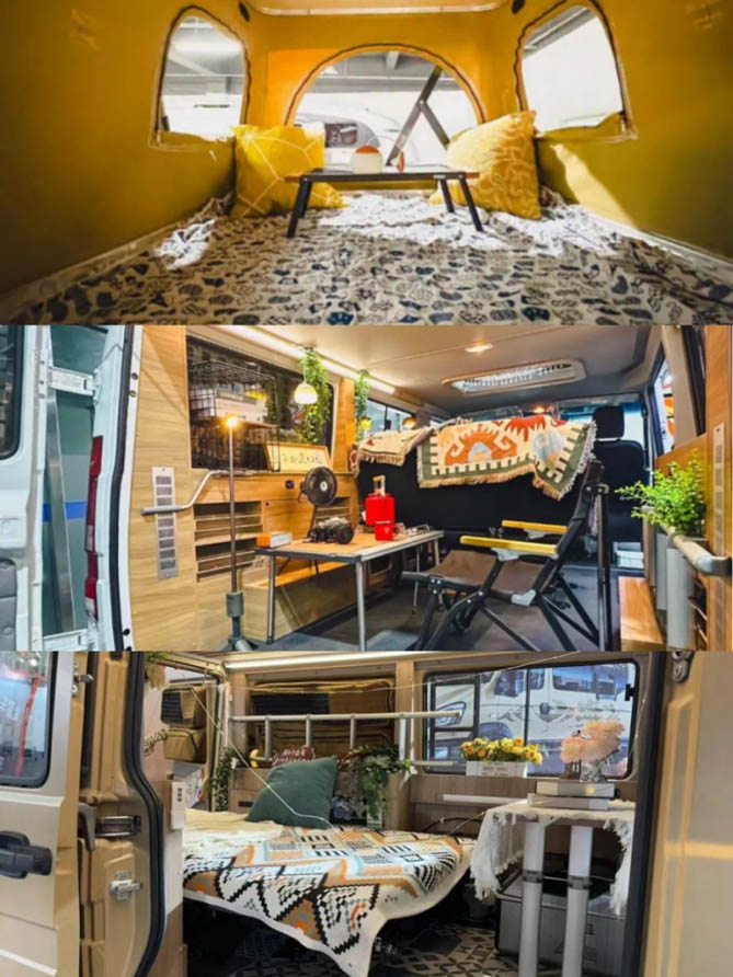 设施一应俱全: 厨房、卫生间、卧室、储物空间... 宛如移动小家,满足旅途中的各种需求。