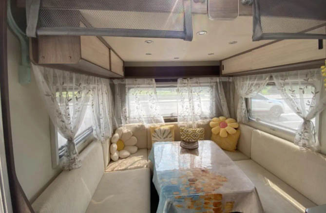 空间宽敞舒适: 依维柯欧胜房车内部空间规整且超大,孩子活动不受限,吃喝拉撒睡车内解决,省心!