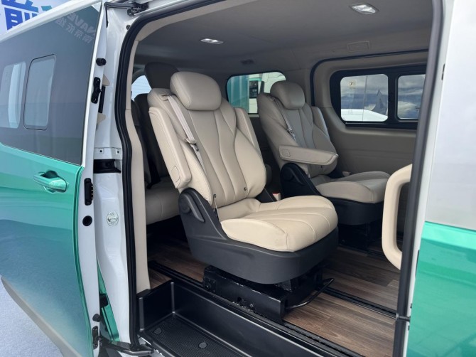 聚星不仅满足当地法规需求,更在续航、空间和舒适性等方面表现卓越。车辆搭载88.8kW·h大容量电池,CLTC工况续航达450km,支持快充30分钟至80%,具备7×24小时连续运营能力,很好地解决了运营商续航焦虑;1.2立方米超大行李舱轻松满足储物需求。独创"魔方空间"设计,二、三排座椅可前后灵活调节,为6名乘员打造远超传统车型的宽敞体验。三区独立空调、丰富的USB/Type-C充电接口和双侧电动移门等贴心配置,全面提升服务品质;10向电动调节驾驶座椅采用人体工学设计,配合EPS电子助力转向、四幅式多功能方向盘和NVH静音工程,有效降低驾乘疲劳,让您倍感舒适。