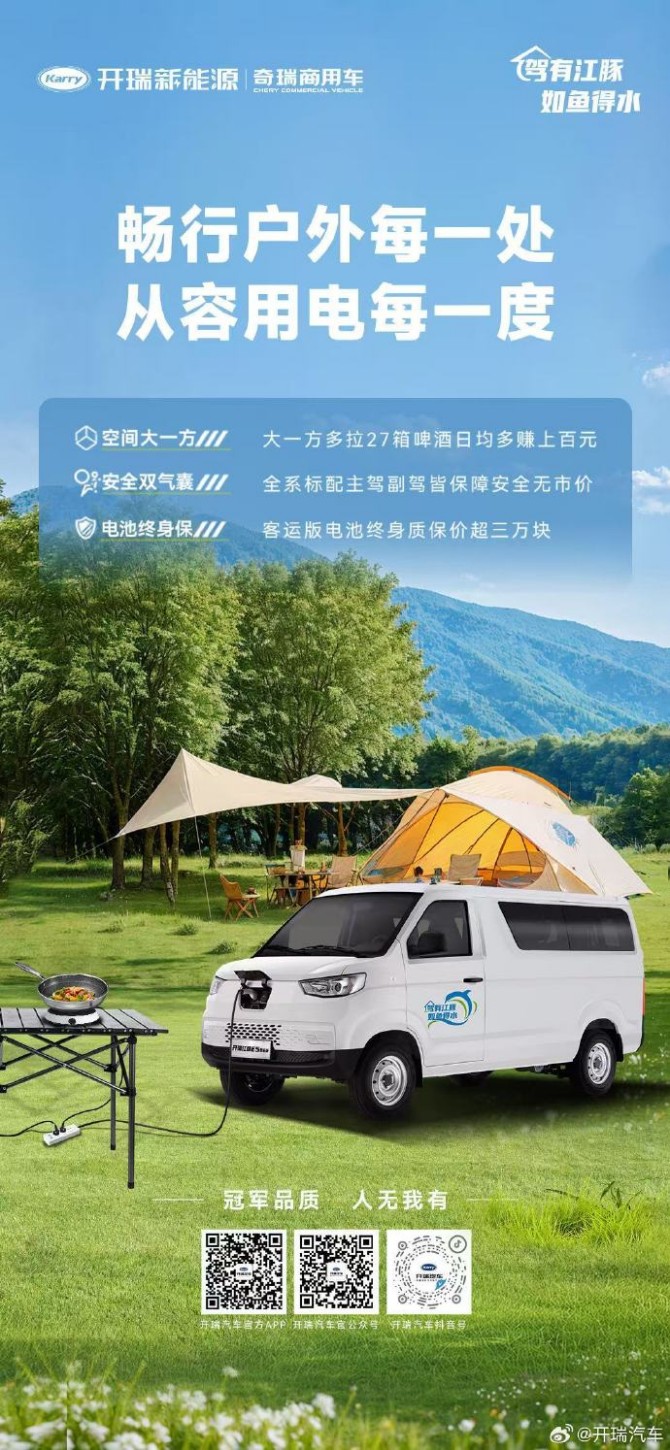 江豚E5·宁德300不仅是奇瑞商用车技术实力的集中体现,更是风雨同行的可靠伙伴。它以续航拓展商业半径,以品质守护每份收益,以服务提升运营效能,不只为抵达远方,更为让每一段创富之路都走得更加从容、稳健。