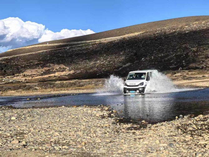 当车辆驶过塔公草原的高原土路,全时四驱系统与全地形轮胎稳抓地面,氮气减震器过滤颠簸,车身始终保持稳健姿态;加装涉水喉的车辆,穿越涉水浅滩毫无波澜,轻松通过。