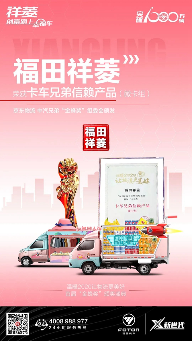 作为新一代微卡典范,福田祥菱以卓越的产品、服务,推动行业高效、高质量发展,树立行业标杆;以优秀的性能,可靠的品质,获得城配特别是末配送领域果蔬、粮油、食品、家电等众多细分场景用户的好评。