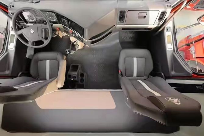跑长途身体疲惫精神差?乘龙H5超轻版,必须助你一路躺赢!乘龙H5超轻版的全新驾驶室,采用四点气囊悬置设计,配合豪华多功能高端气囊减震航空座椅,应用人机调校技术,让司机与座椅更贴合、更舒适;同时更有令许多细节控卡友心动的平地板、双卧铺、手机支架、1000W 220V的行车电源,以及驾驶室电动液压翻转等等细节配置,既舒适、更舒心,从此彻底告别长途劳苦,一路畅享坦途,挣钱更长久!
