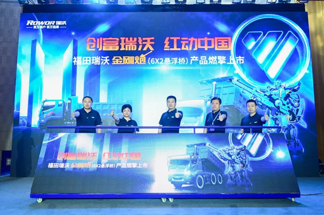 应势而来,万众期待。随着新品发布倒计时响起,时代事业部副总裁 瑞沃营销公司总经理王建军、瑞沃营销公司常务副总经理王海军、瑞沃营销公司副总经理王波、武汉全柴动力有限责任公司总经理龚智勇、马鞍山市力争汽车贸易有限公司副总经理徐联珍等领导共同登台,在所有与会嘉宾的见证下共同启动装置,福田瑞沃金刚炮(6x2悬浮桥)工程车正式上市发布。这款专为合规多赚创富而来的工程车,诠释了“多载高效、创富利器”的产品特质,将以更强的承载性能、更可靠的产品品质成为新世代卡友工程运输创富利器。