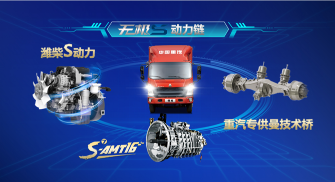 爆款动力领衔,打造无极S动力链。该车匹配中国重汽第七代S-AMT16变速箱,以行业唯一八挡无忧换挡,带来平顺舒适驾驶体验,解放司机左脚和右手,起步、加速、爬坡表现优秀,轻松应对城市复杂路况;匹配重汽专供曼技术桥,传动效率高达96%,轮端终身免维护,以强悍实力,适配更多城配运输场景,赢得“全能王”标签。