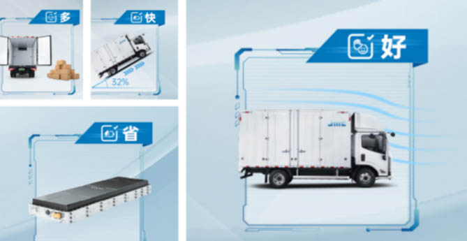 江铃E路达针对不同行业定制了不同的车型,实现了快递、果蔬、建材、冷链等城市货运场景的全面覆盖。标配4.2米大货箱,搭配650mpa超强钢车架,214mm直通式大梁,高承载复合板簧,承载性也异常强悍,完全满足用户多拉多赚的需求。基于行业首发高扭矩扁线电机和行业首发低损耗SiC多合一电控技术,江铃E路达最大输出功率可达167千瓦,最大扭矩可达420牛·米,0-50公里/小时的加速时间仅需6.2秒,最大爬坡度30%,远远领先同级别。内饰采用大面积软质材料包裹,赋予座舱精致品质。车内提供了符合人体工学设计的乘用化座椅和扶手,可有效缓解驾驶疲劳。驾乘不止省力还省心,这款车采用宁德时代中置一体化电池包,循环寿命高达3500次,且衰减在20%以内,质保周期可达8年或40万公里,真正做到品质可靠。值得一提的是,在高温环境下车辆从30%充电至80%仅需30分钟,补能更快捷。在节能省钱方面,E路达轻量化与低风阻设计完美契合,满电情况下,车辆最高可实现310公里的超长续航里程,比同电量的同级别车辆可多跑40公里,每万公里能为用户节省330元。