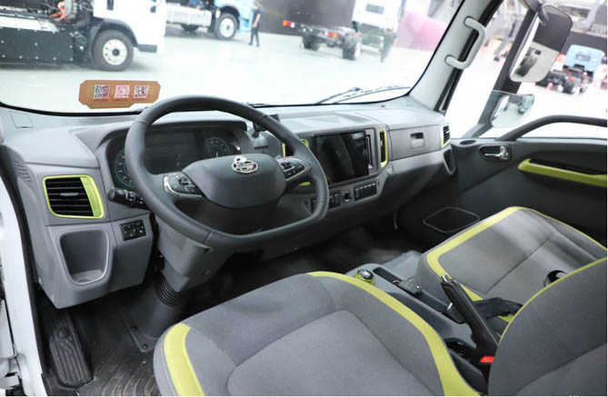 除了三电系统质变提升之外,乘龙L2V电动轻卡还拥有更多的智能化配置。其中控台配备7寸彩色TFT组合仪表和10.1寸大屏娱乐系统,形成科技感十足的智能双屏联动。不仅集成倒车影像,还通过乘龙新能源车联网2.0系统,实现车辆状态的远程监控与管理。此外,EPS电动助力转向和旋钮换挡设计,极大简化了操作流程,使得驾驶更加轻松便捷。