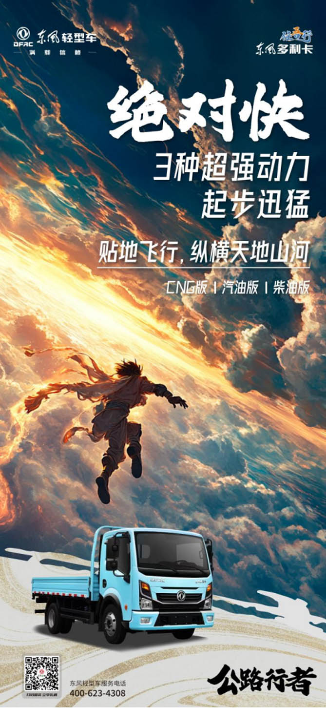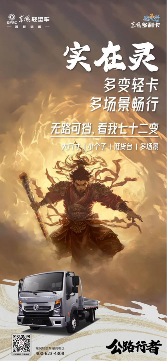 8月20日,中国首款3A级游戏《黑神话:悟空》正式发售,在国内外掀起了一股东方文化热潮。众所周知,“悟空”还拥有一个寓意深远的别名—孙行者。行者,在中国文化里,指的是机智果敢,克服万难,漫长修行的行路人。中国神话里有孙行者,而中国公路上有东风多利卡“任吾行”,其身材百变,动力强大,坚韧能扛,能走善行等特点,让它成为了当之无愧中国轻卡界的“公路行者”。
