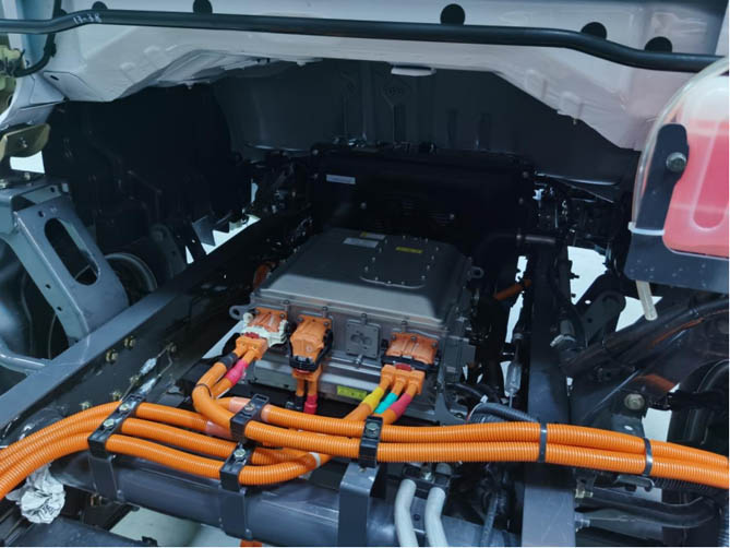 电池组方面,乘龙L2V采用了单包电池结构,中置于大梁中央,这一创新设计不仅减轻了电池组的重量,缩小了体积,更提升了电池组的安全性。同时,中置电池组的设计还有效降低了整车的重心,提高了车辆的稳定性。