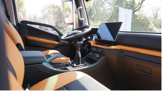 虽然是小卡,但领跑L3-2.0L双燃料车型拥有家用SUV般的“尊享驾舱”。打开车门,其驾驶室非常讲究,采用全包软装,激光纹理,做工精细;双色撞色点缀设计,年轻活力值拉满;轿车化贯通式副台,尊贵舒适;标配减震座椅,座垫和靠背仿赛车的包裹性侧翼,柔软有支撑,长途驾驶室不疲劳,让创富之旅更加轻松。