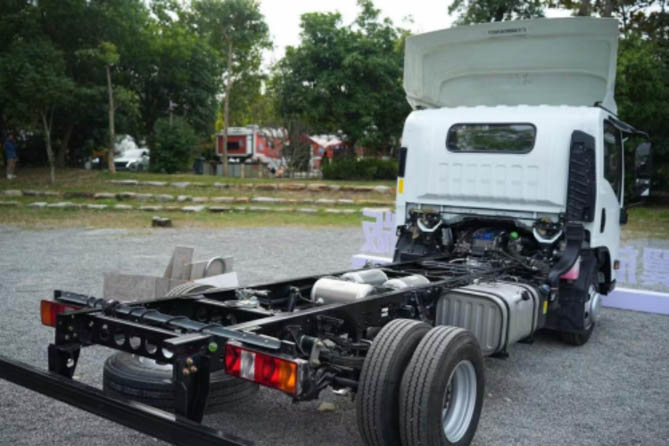 除了高承载和轻量化设计外,翼放EMT猛犸象在动力性能上也表现出色。它搭载了五十铃新一代4JD25发动机,功率升级至112kW,最大扭矩达到400N·m。这一强劲的动力组合使得翼放EMT猛犸象在起步、加速以及爬坡等工况下都能够表现出澎湃的动力输出。
