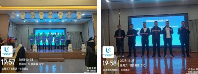 除了硬核产品实力的了解,活动现场的互动环节更是精彩纷呈,有奖问答与抽奖环节点燃全场热情,客户们踊跃参与,在趣味互动中深入了解潍柴蓝擎X7的技术优势;政策发布环节,潍柴蓝擎更以诚意满满的购车方案,为客户创造实实在在的价值,潍柴新能源商用车营销公司副总经理李庆彪为现场订车客户送上象征 “财富与信赖” 的金钥匙时,现场氛围达到高潮,这不仅是客户对潍柴蓝擎X7的认可,更是对潍柴新能源品牌实力的信赖。