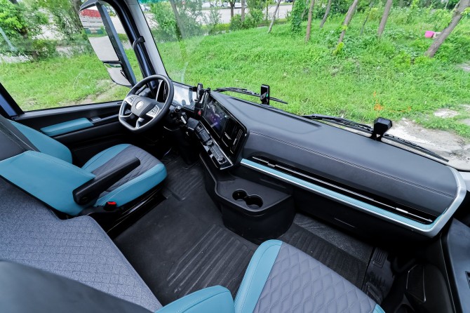 空间设计上,新品充分考量快递行业 “多装快跑” 的核心需求,采用 2350mm 超宽车身搭配定制化高顶货厢,货厢容积突破 70 立方米,较传统同级别中卡提升 10% 以上,按西南快递常用的 0.05 立方米周转箱计算,单次运输可多装载数十个,在电商大促 “爆单” 时段能有效提升单趟运输收益。驾驶室内部采用纯平地板设计,内部高度近 1900mm,多数成年人可直立行走,搭配 1200mm 加宽卧铺与大容量储物箱,既能缓解长途驾驶员的疲劳,也能满足衣物、工具等物品的收纳需求。针对绿通运输的重载场景,车型还采用 750L 高强钢车架,承载能力进一步强化,轻松应对 15 吨左右的货物运输。
