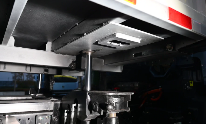 作为甩厢车的核心竞争力,潍柴蓝擎的换厢技术堪称“行业标杆级”,搭载自主研发的液压分配系统,通过电磁控制将系统压力精准均衡到四个油缸,实现油缸升降高度的自动匹配,再配合自动纠偏功能与举升、顶升双重机制,能让大梁始终保持平稳支撑;4 组上置支撑腿与4组下置自适应支撑腿协同工作,仅用2-3 分钟就完成了货厢卸载,即便在坑洼路段智能找平与自动矫正功能也使得换厢过程全程无晃动、无偏移,从卸厢到重新装厢的完整流程,更是控制在4分钟以内,相比传统货车动辄1-2小时的装卸货时间,效率提升超过15倍。