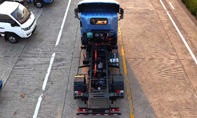 在动力与可靠性上,蓝擎甩厢车的配置更是直击行业痛点。新能源动力组合不仅大幅降低能耗成本,更通过潍柴/汇川多合一系统优化动力传输效率,起步平顺、加速强劲;汉德免维护前桥/后桥的应用,减少了70%的维保频次,配合760×152至865×193规格的高强度直通梁车架,承载稳定性同级领先,即便在颠簸的城郊路段也能保障货物安全。值得一提的是,液刹、气刹按需匹配的设计,让轻载城配、重载快运场景都能找到最优制动方案。