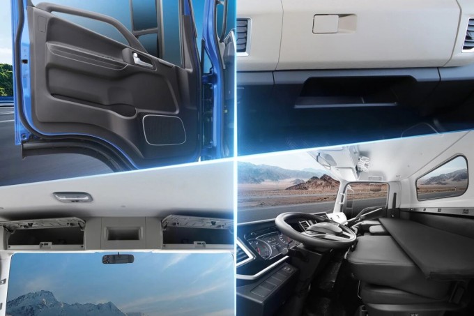 跑长途累,休息不好?骏铃A9坦克以其2090mm的行业超宽驾驶室,打造“移动标间”级的舒适体验;排半车型配备双人卧铺,身高1.8米的驾驶员也能轻松躺平,休息好干得更好;160L全车储物空间,让工具设备和生活物品有序存放;二级踏步与迎宾灯的细节设计,如坦克舱门的精心设计,让每一次进出都从容体面。