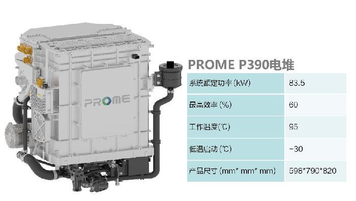 上汽轻卡燃料电池轻卡底盘的工作原理是通过氢气与空气中的氧气发生电化学反应产生电能,驱动车辆行驶和上装工作,并最终以水蒸汽形式排出,真正实现绿色零污染、零排放。产品搭载了自主研发的PROME P390电堆,功率达到83.5kw,处于国内领先水平。