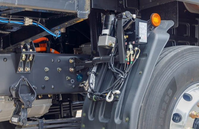 乘龙H5纯电牵引车采用龙骨框架结构驾驶室,车身双层大梁经过一次冲压成型,具有强大的承载力,被广大用户誉为“龙的脊梁”。其三电系统全部采用一流品牌,系统精细控制,并进行了电池跌落试验、火烧、电池海水浸泡、挤压等全方位极限验证,电机电控等主要总成部件,则提供5年20万公里品质保障,让用户可以专心赚钱,再无后顾之忧。