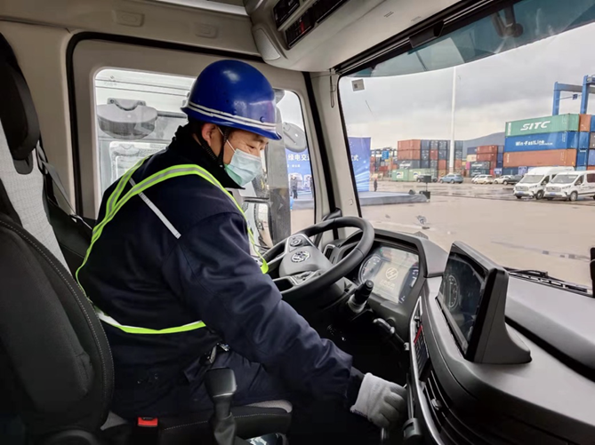 此次交付的红岩杰狮H6充换一体纯电动牵引车,无需化石燃料驱动,有效杜绝一氧化碳、碳氧化物等尾气排放,真正实现排放“零污染”,充分符合连云港“零碳码头”的绿色发展要求;其次,它的电机通过电能驱动,摒弃了传统发动机噪声困扰,可实现噪声“零污染”,有效减少港口机动车噪音;此外,其驾驶室内饰均选用环保无害材料,打造绿色健康空间,可实现驾舱“零污染”,保障港口驾驶员健康舒适工作。