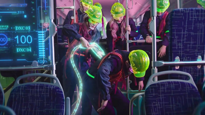 影片明确地选取当下流行的“赛博朋克”艺术风格,提炼出其中的“科技化”、“未来感”元素和宇通工厂的生产线上的机械之美相结合,再加入街舞和电音派对的内容充实人和车的场景化关系,用“足球对抗”的方式,既丰富了片中人物的形象,也能成功地和世界杯的主题相契合。可以说,这部片子的出炉是新媒体时代广大网友共同期待的效果。