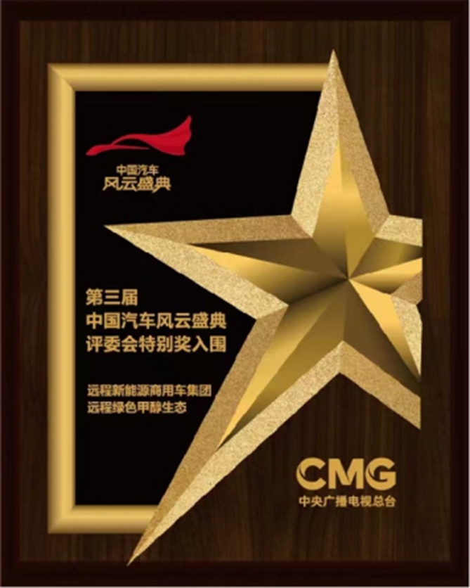 远程绿色甲醇生态入围央视《中国汽车风云盛典》评委会特别奖