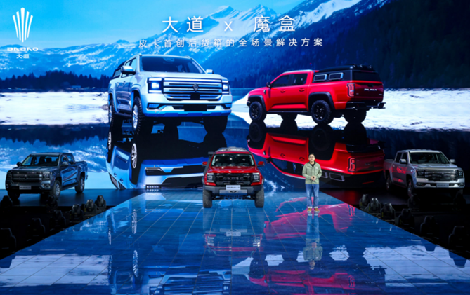 为了更好地解决消费者用车的诸多痛点,大道皮卡更是打开了皮卡车型的百变基因,推出了基于后货箱个性化改造的全场景解决方案——大道魔盒,针对用户的不同需求和高频使用场景,定制化设计后斗的空间布局、专属分区,用户还可根据用车场景及个性化使用需求进行设计与拓展,真正实现一车满足多种用车需求,实用性满分。