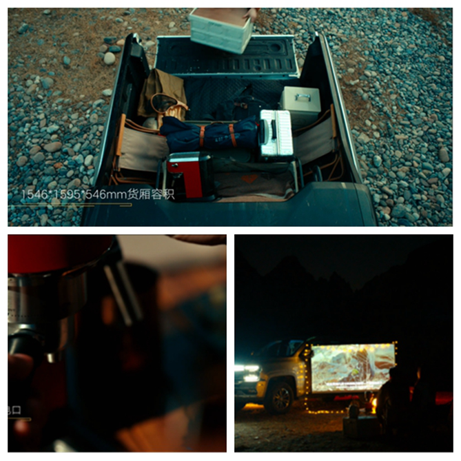 大道皮卡还对其尺寸达1546*1595*546mm的货箱进行了优化,充分满足出游拉装备日常拉货物等商乘两用的多样化需求。配备尾门开启缓降、尾门关闭助力、400w 220v取电口等功能,在能装载帐篷、桌椅、电器等设备的同时,还能为投影仪、电烤炉、电水壶等电器供电,让尾箱从载物空间转化为露营娱乐平台,让驾乘者享受更加丰富多彩的露营生活。