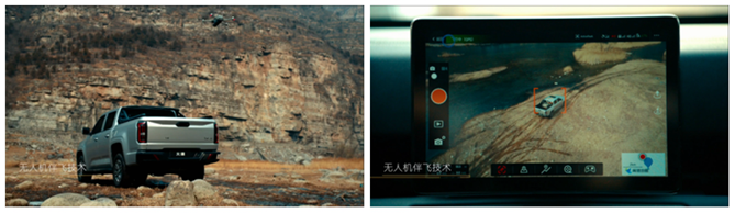 更为创新的是,大道还应用了行业罕有的无人机伴飞技术。在需要时,只需打开这一功能,就相当于多了一架“僚机”,可通过车内的语音控制,实现无人机探路、伴飞、拍照、回传等多项功能,同时记录下生活中的美好瞬间,完成属于个人的探险大片。