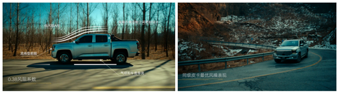 值得一提的是,大道还是为数不多在风阻、噪声等方面非常下功夫的皮卡品牌。其凭借低至0.38Cd的风阻系数、同级皮卡最优的风噪表现、4mm静音玻璃以及“茧房”静音座舱设计,让乘坐者能在静谧的环境中小憩,带来不输于SUV和轿车的出行体验,与传统皮卡相比有着极大优势。