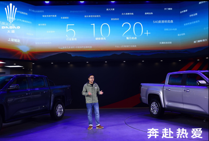 除了实力强大的新车预售,央视财经著名主持人陈伟鸿现场为大道预售发布会助阵,主持全场活动;江铃大道更是与央视财经《最美自驾路》栏目启动重磅合作,联名定制8条“最美自驾路”,致力让更多人感受到全新的皮卡生活方式,带领用户体验到最美自驾路的魅力旅程。多项举措不断将现场气氛推向顶峰,让大道皮卡的全场景用途更加深入人心,更是大道品牌致力与用户“玩在一起”、共赴热爱的见证。