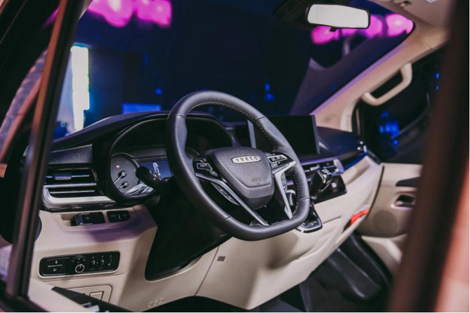 超新生主义美学与极致工艺的完美配对,打造出依维柯聚星充满未来科技感的头等座舱。打开车门,坐入驾舱,以人为中心的设计理念,在这一空间内得到了充分展现。新青年,有颜,够炫!