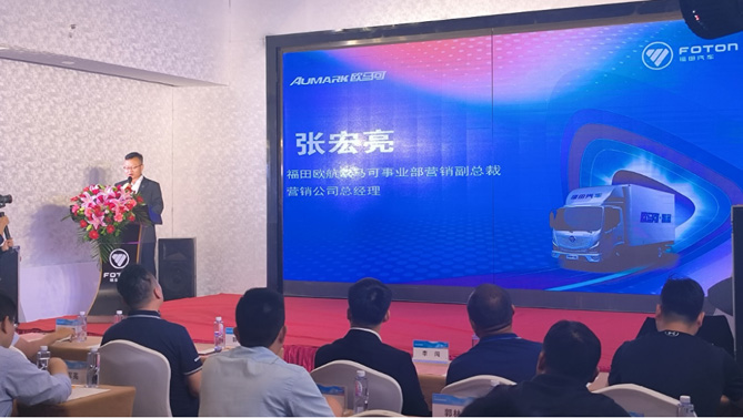 “欧马可智蓝是福田汽车打造的高端新能源轻卡样本”。活动现场,欧航欧马可事业部营销副总裁张宏亮表示,“基于轻卡使用场景复杂、运输货物多样的特点,今天给大家带来欧马可智蓝HS混动,ES、EX纯电系列新品,以卓越的产品性能,完善服务体系,为新能源商用车规模化应用推广带来更优解决方案。秉承“以用户为中心”的理念,欧马可智蓝从用户需求而来,实现工程抢险、快递快运、商超配送、搬家物流等10大运输场景全覆盖,以全局视野破除思维定势,以新思想、新生态、新赛道、新蓝图的理念在市场中持续引领。”