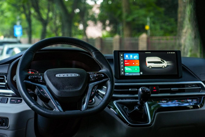 此外,依维柯聚星12.3寸高清触控大屏搭载了第3代IVECONNECT智能交互系统,集成腾讯TAI、车载微信、智能导航、可生长模式(FOTA远程迭代升级)等功能,在送货途中,假设客户增加了新的电子产品下单需求,可通过车载微信及时沟通,确保每次服务都尽善尽美。同时,该车还支持QQ音乐、喜马拉雅、芒果TV、哔哩哔哩等视听功能。忙碌了一天,下班路上打开听音乐或视频放松,将带给大家更惬意的体验。