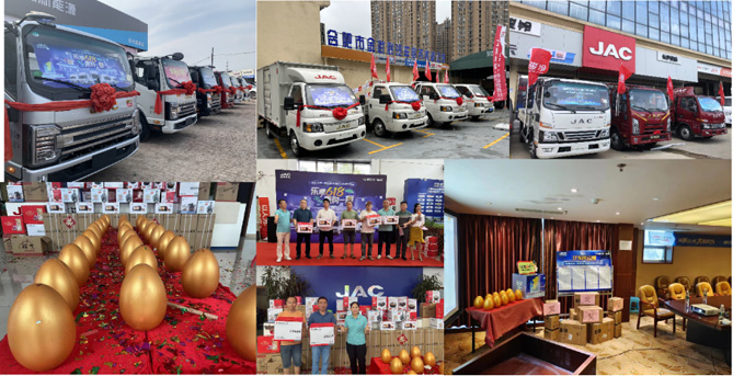 “江淮1卡大品牌,活动福利多,果断入手了!”来自天津、石家庄、平顶山、临沂、芜湖、成都等地的卡友纷纷说道。夏不为利,周末狂欢。活动现场,到店即送伴手礼、试驾礼、砸金蛋100%中奖、互动盲盒抽奖……诚意十足,吸引万千粉丝的参与;9.9元抢千元购车基金、千元豪华大礼包、千元服务大礼包、千元油电卡补贴……福利多多,助力用户轻松开启创富梦。