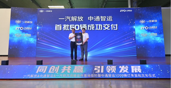 一汽解放营销总部部长张松向中通智运交付首批订单车辆