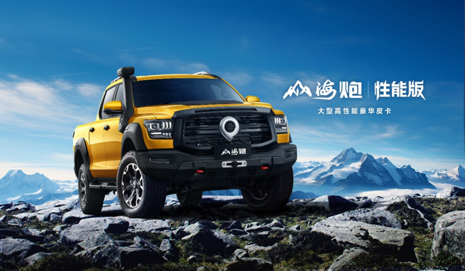 山海炮性能版定位大型高性能豪华皮卡,是长城炮品牌2.0时代乘用休闲品类的又一重磅力作,拥有“更大、更强、更豪华“三大硬核实力。山海炮性能版整车尺寸更大,同级最宽,是真正的宽体皮卡,提升驾乘空间舒适性;搭载3.0T V6+9AT动力组合,配备博格华纳4A+MLOCK智能四驱系统、K-MAN氮气减震、12500磅T-MAX前后绞盘等硬核越野装备,满足高端户外玩家的越野需求;拥有超豪华智能座舱,NVH性能优异,搭载L2+高阶智能驾驶辅助系统,为用户带来畅享户外、纵横天地的极致用车体验。