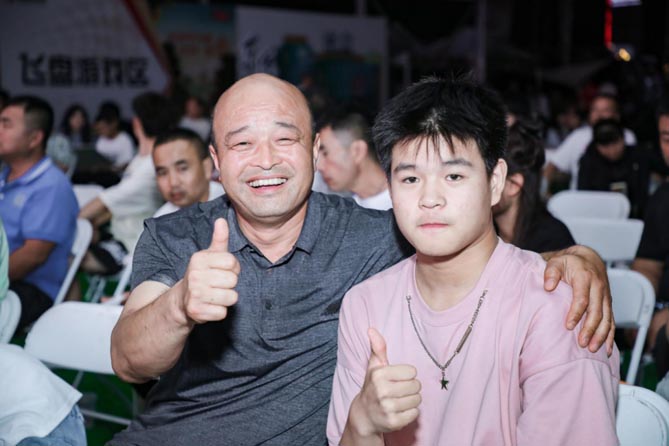 (杨依帆和爸爸杨登平在东风商用车幸福卡车中国行活动现场)