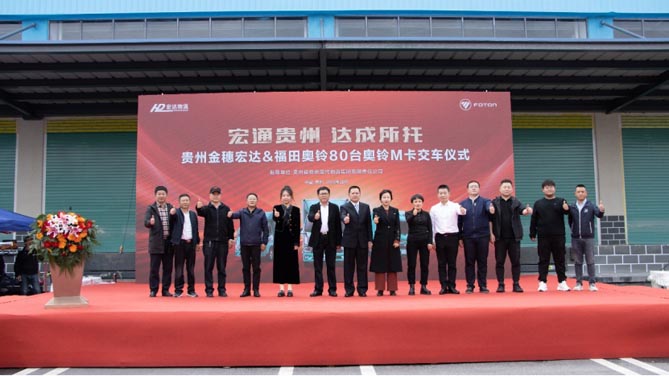 交付仪式现场,贵州省物流行业协会秘书长高波发表了致辞,“金穗宏达物流是贵州的龙头企业,成立20年来,在董事长李红的带领下,为贵州省的物流行业的进步以及乡村振兴等公益事业都做出了重要的贡献。通过此次的合作,希望金穗宏达与福田奥铃能够携手共进,一起推进贵州省物流产业的高质量发展。”