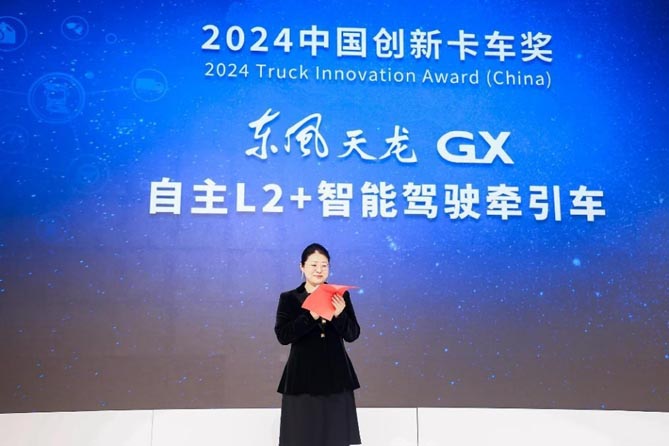 荣誉颁奖:东风天龙GX自主L2+级智能驾驶牵引车获“2024中国创新卡车”奖